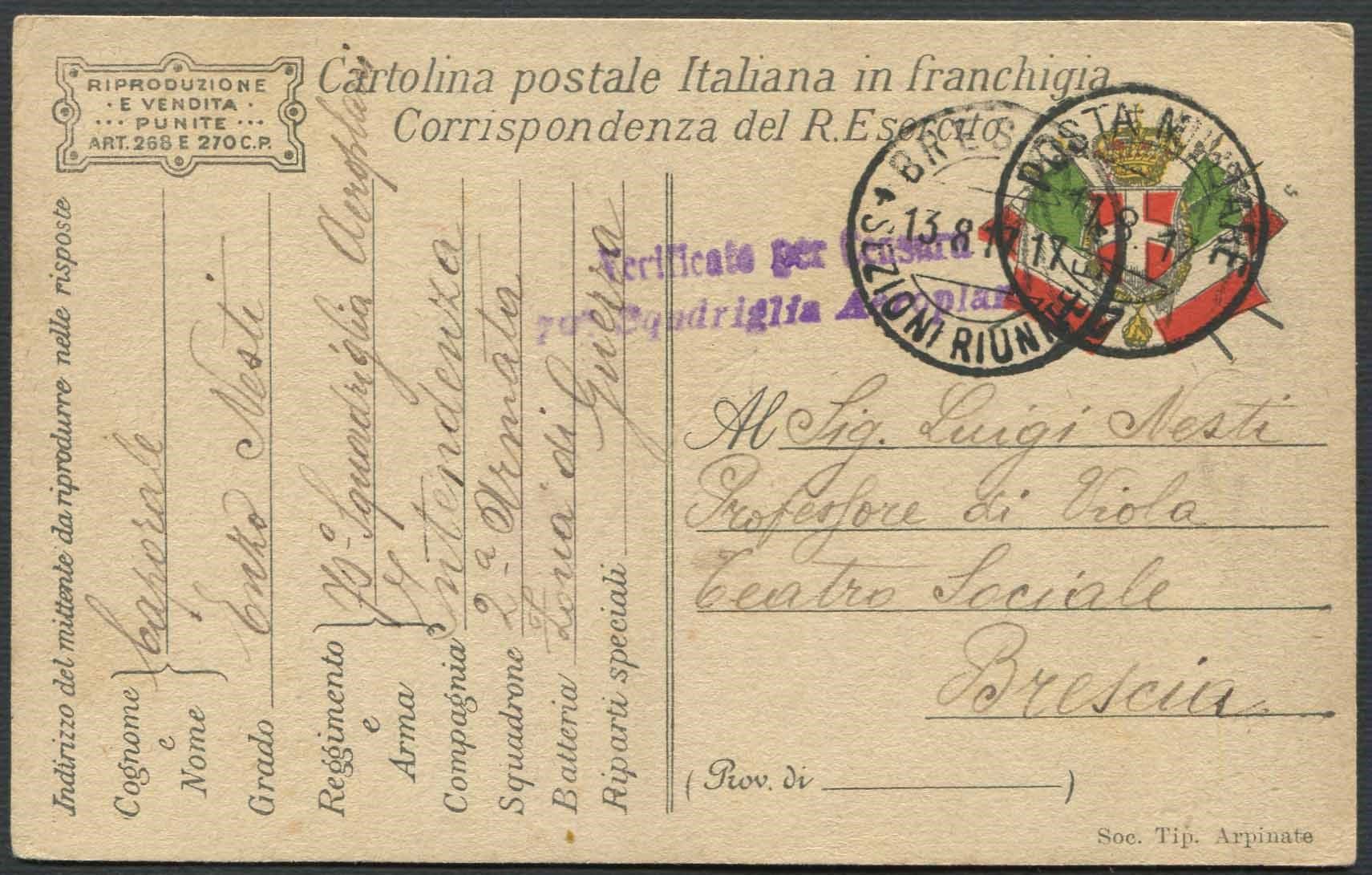 1917, Due cartoline di Posta Militare (P.M. 17), una col bollo Verificato per Censura/70° [..]
