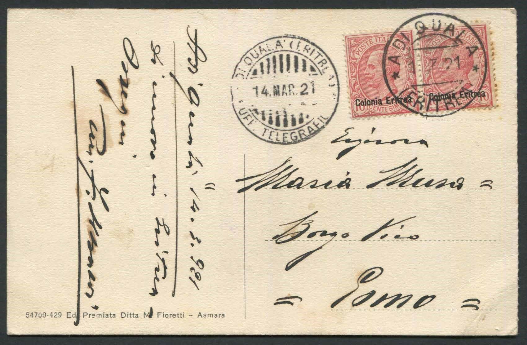 1921, Adi Quala (Eritrea), cartolina per Como del 14 marzo