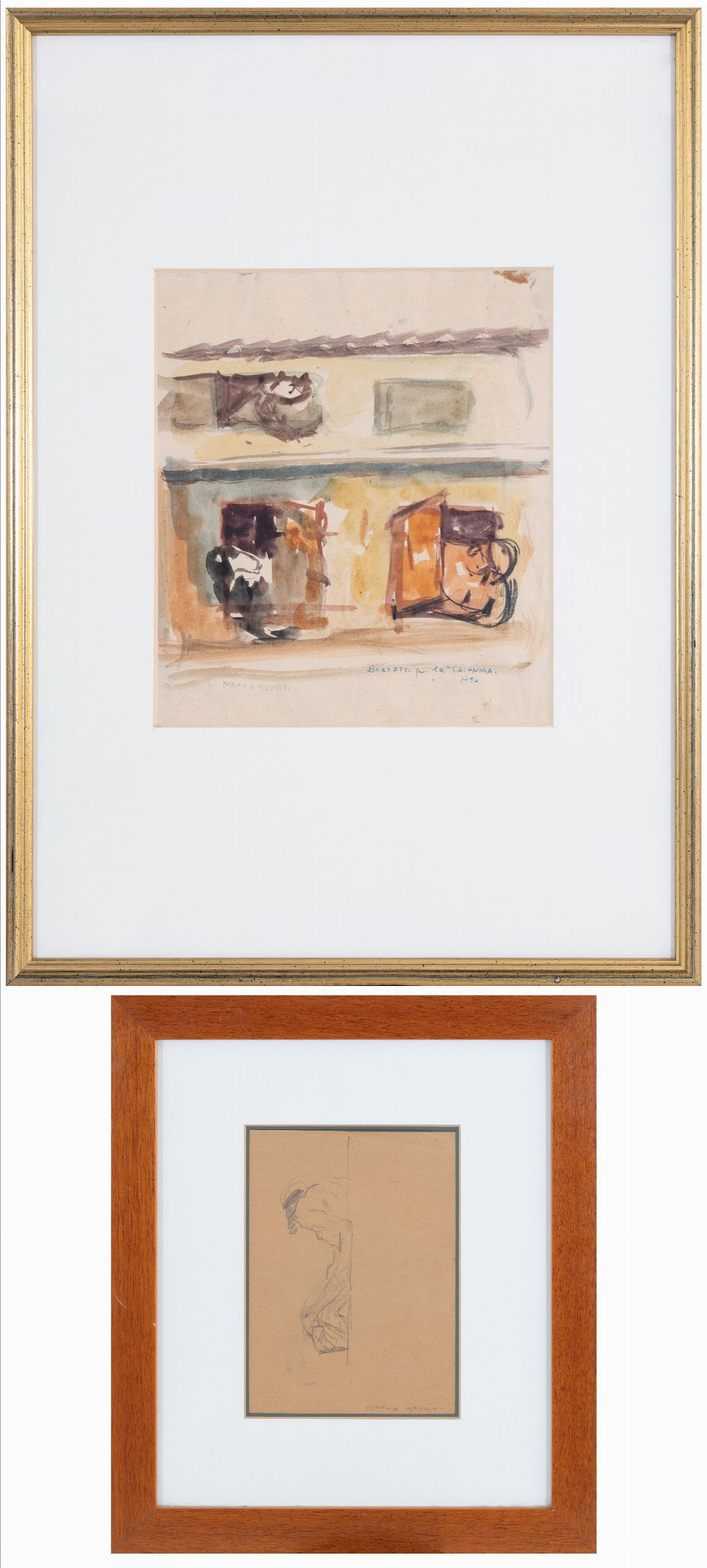 lotto di 2 tecniche miste su carta, cm. 25x21 - 16x12