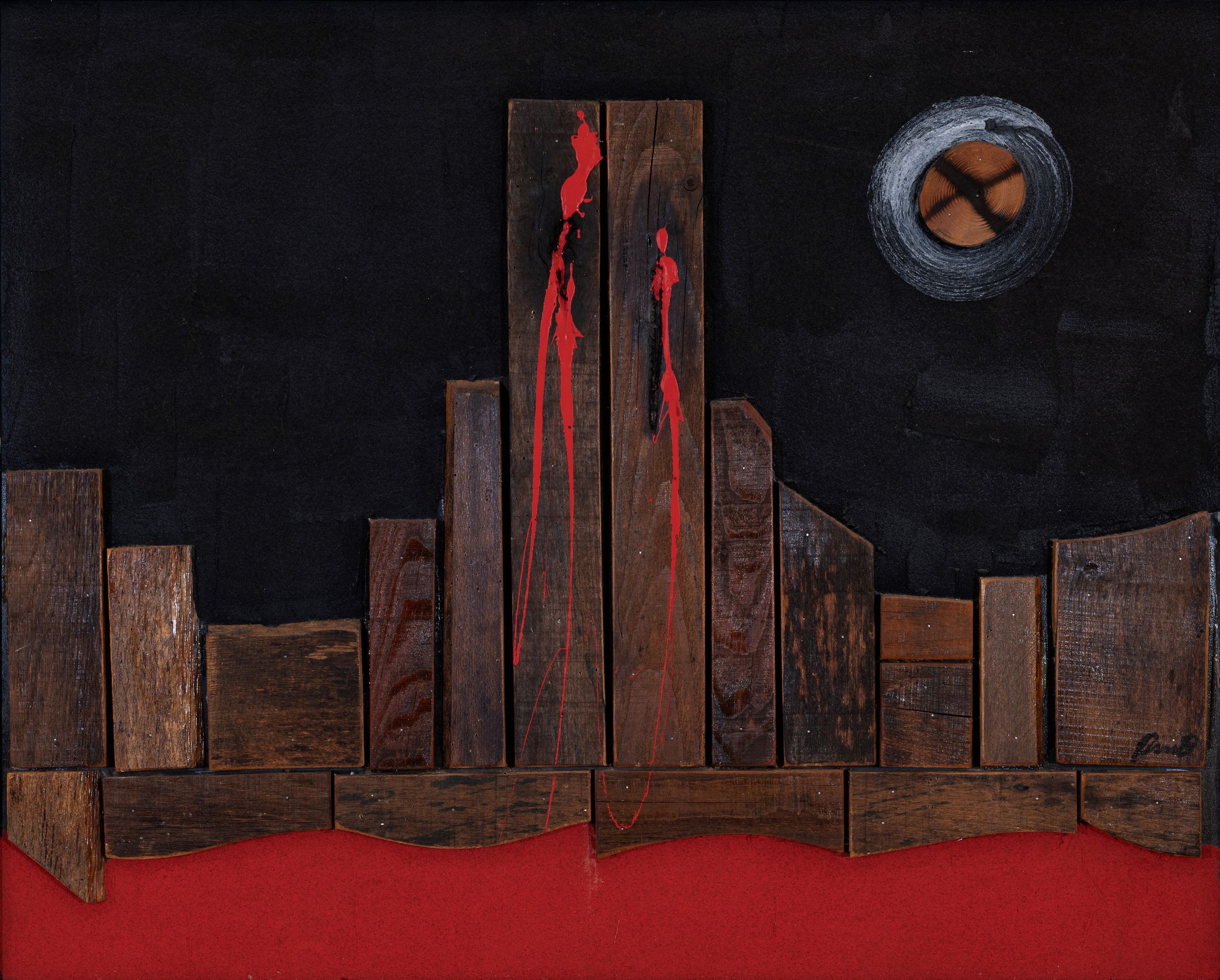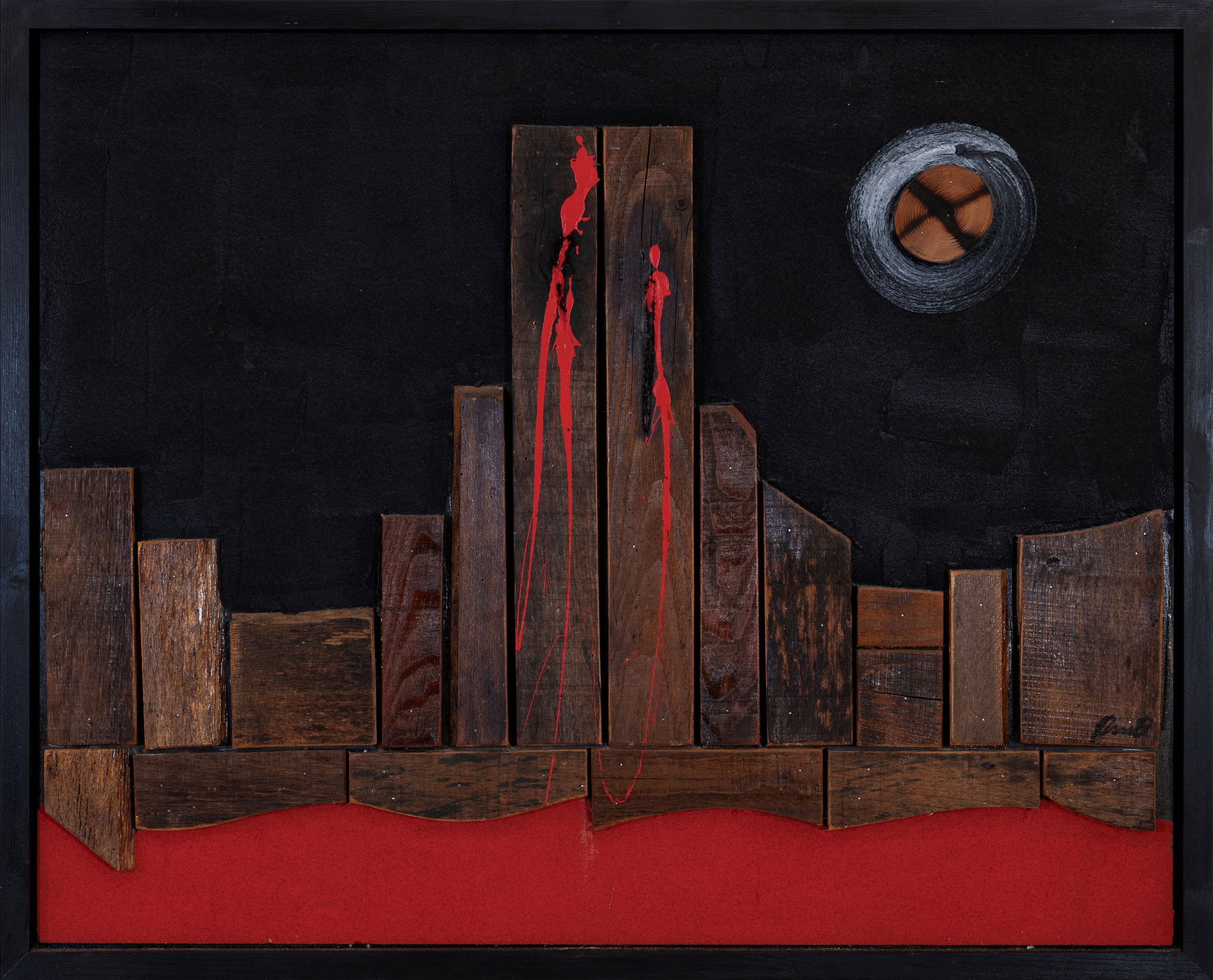 olio, tecnica mista e applicazioni su tavola, cm. 80x100