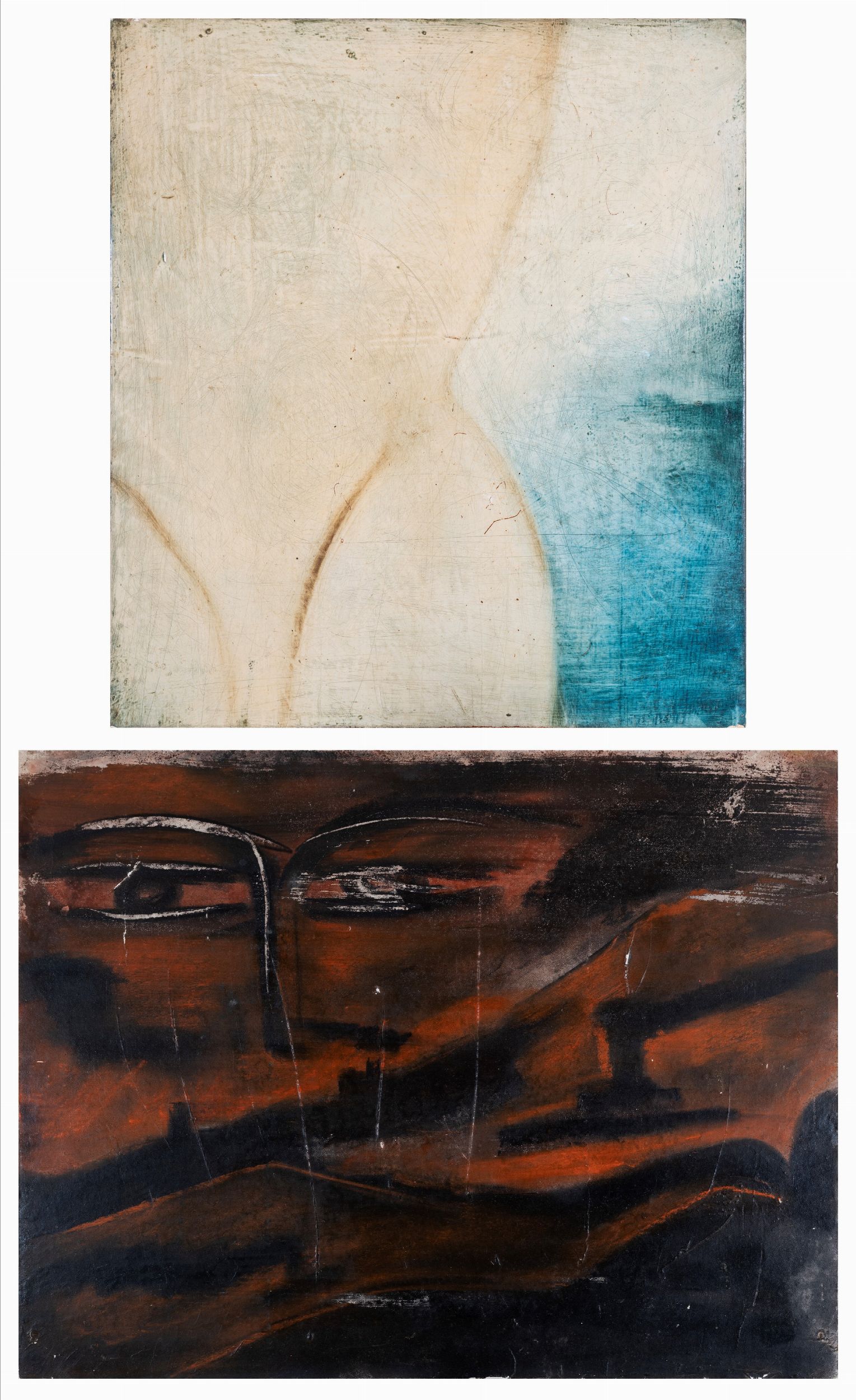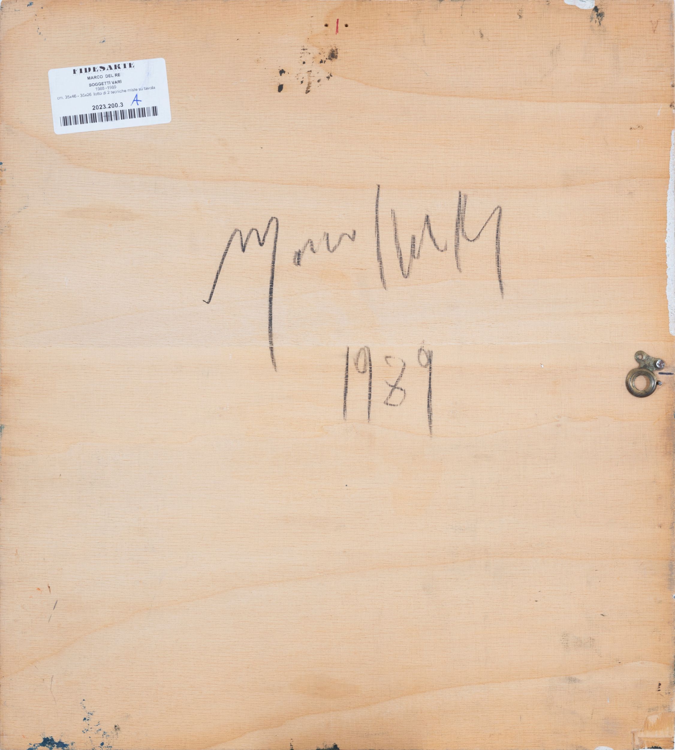lotto di 2 tecniche miste su tavola, cm. 35x46 - 35x26