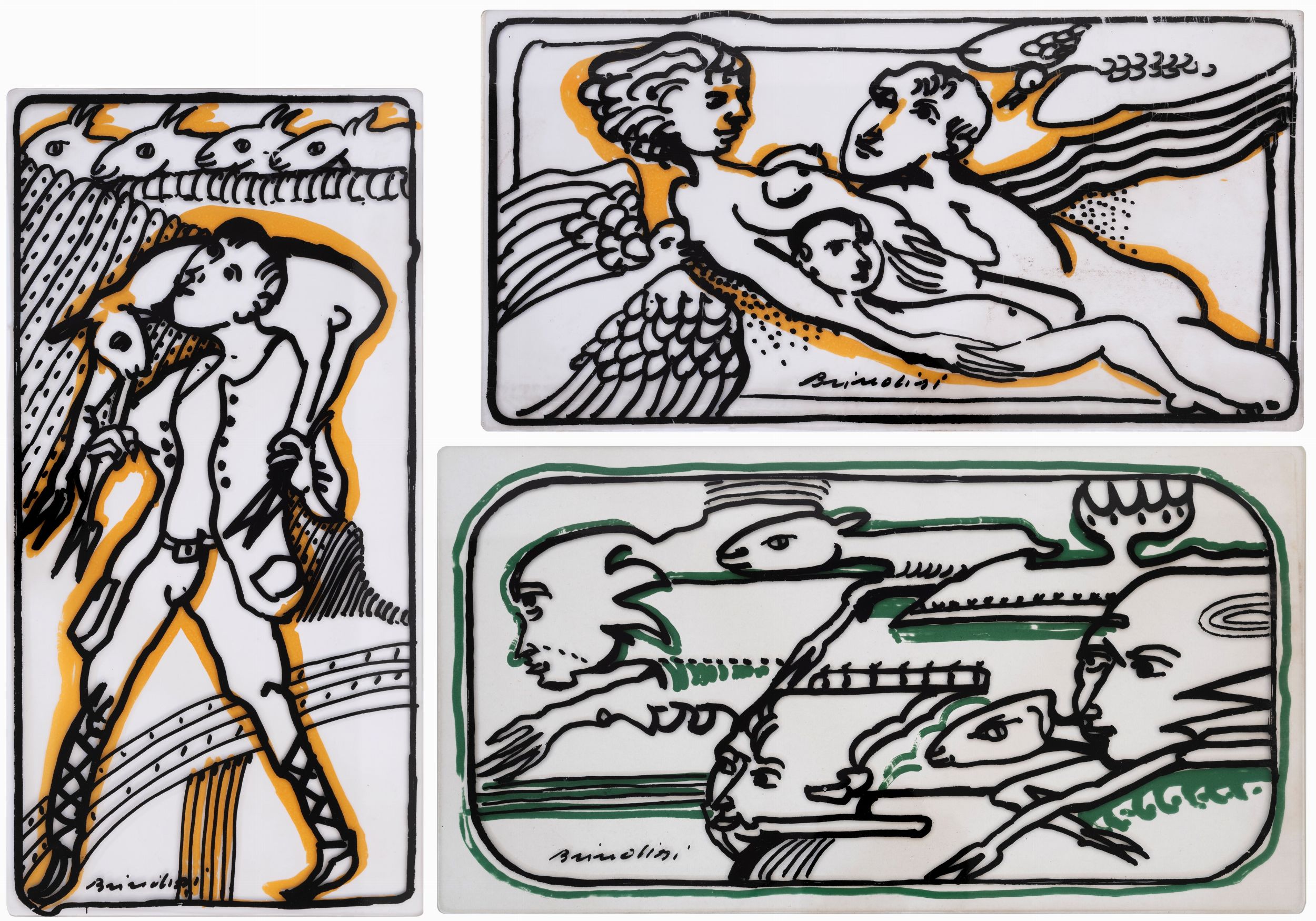lotto di 3 tecniche miste su plexiglass, cm. 20,5x41 (2) - 24x43