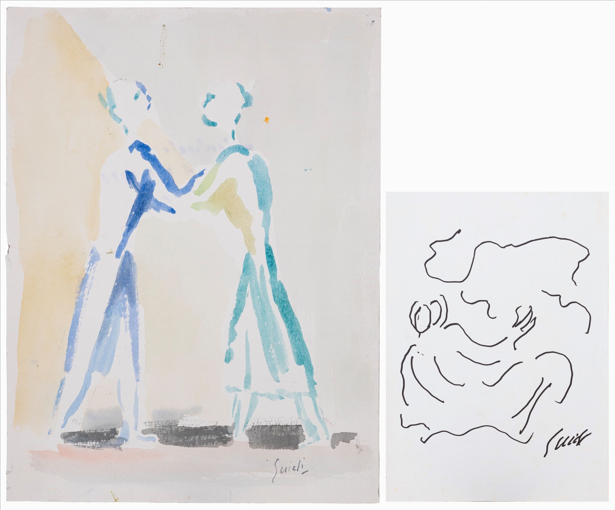 lotto di 2 tecniche miste su carta, cm. 40x30 - 25x18