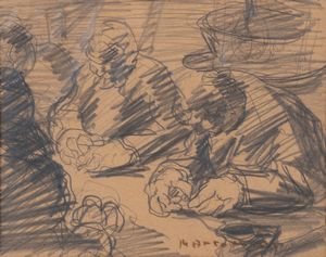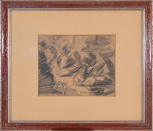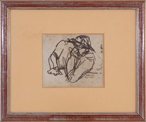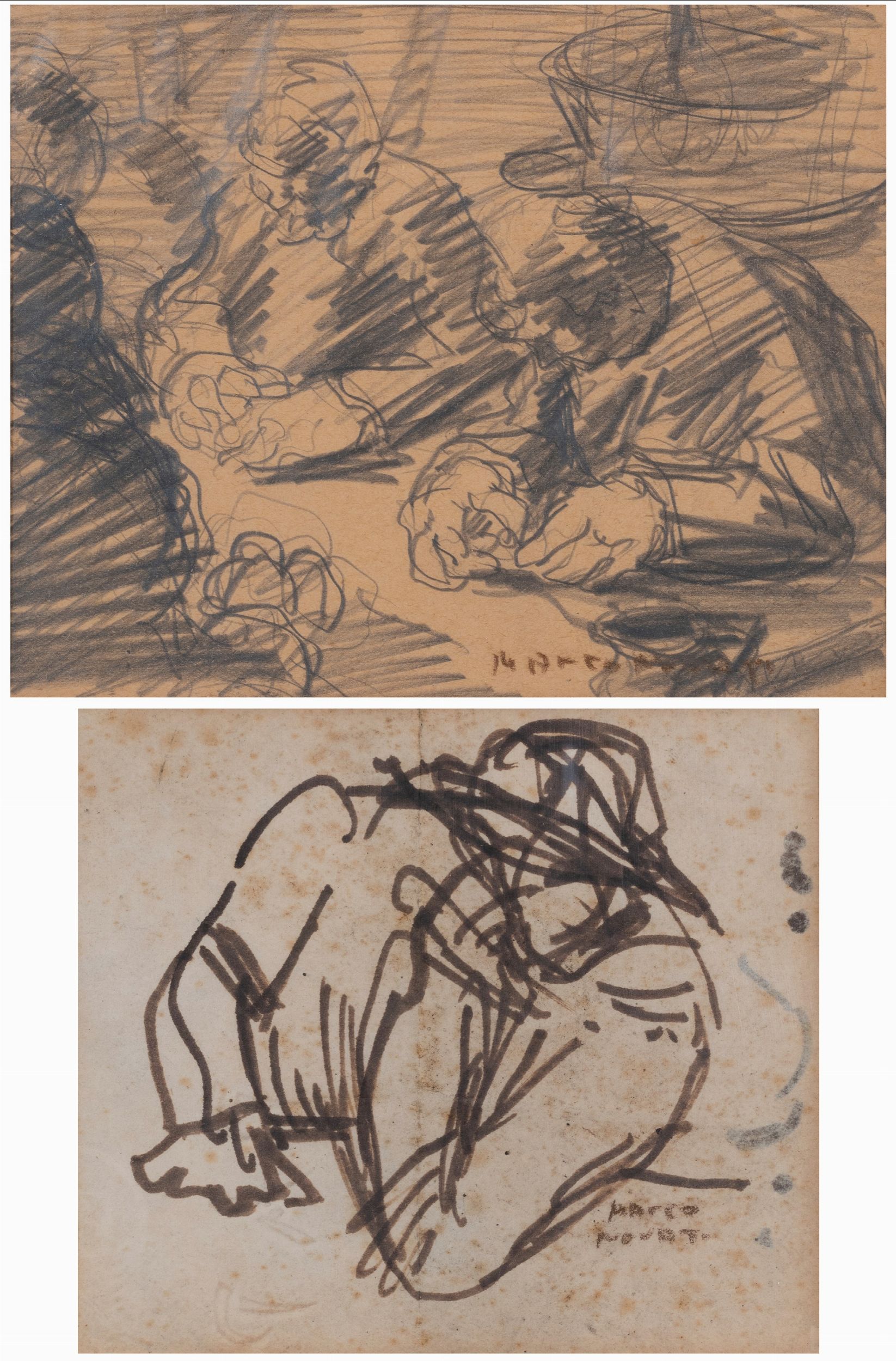 lotto di 2 tecniche miste su carta, cm. 12x15 - 11,5x12,5