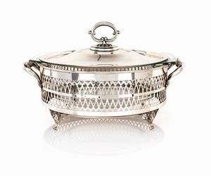 cm 17x28,5x23 struttura traforata ad archetti ogivali intersecanti; piedi ferini, coperchio con presa ad anello. [..]