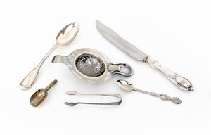 misure diverse cucchiaio da minestra, coltello da arrosto, colino Christofle, paletta, pinza per zollette e cucchiaio [..]