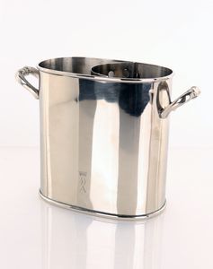 cm 11x42x14,5 di forma ovale con manici squadrati e fascia decorata da rose sbalzate; piedi in forma di capitello [..]