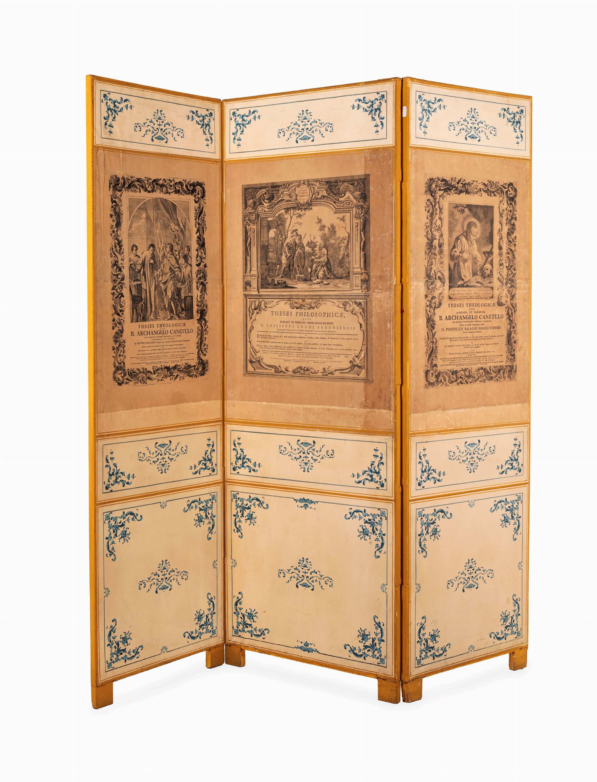 con pannelli decorati recto/verso con incisioni e pagine di libri antichi