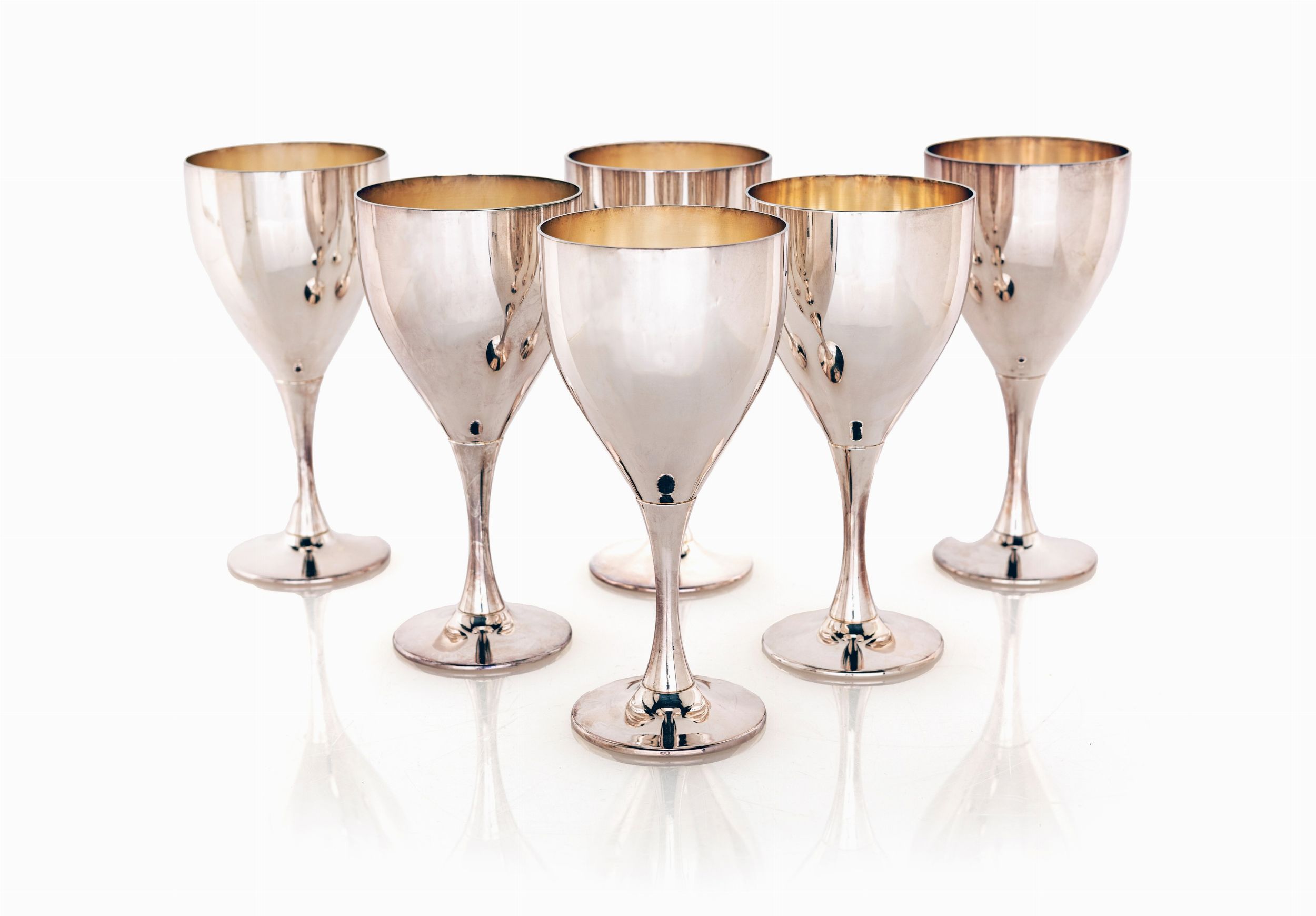 Sei calici in metallo argentato