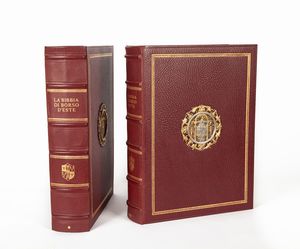 cm 43x32 Bolis, Bergamo 1961 Due volumi. Riproduzione integrale della celebre Bibbia realizzata tra il 1455 e [..]