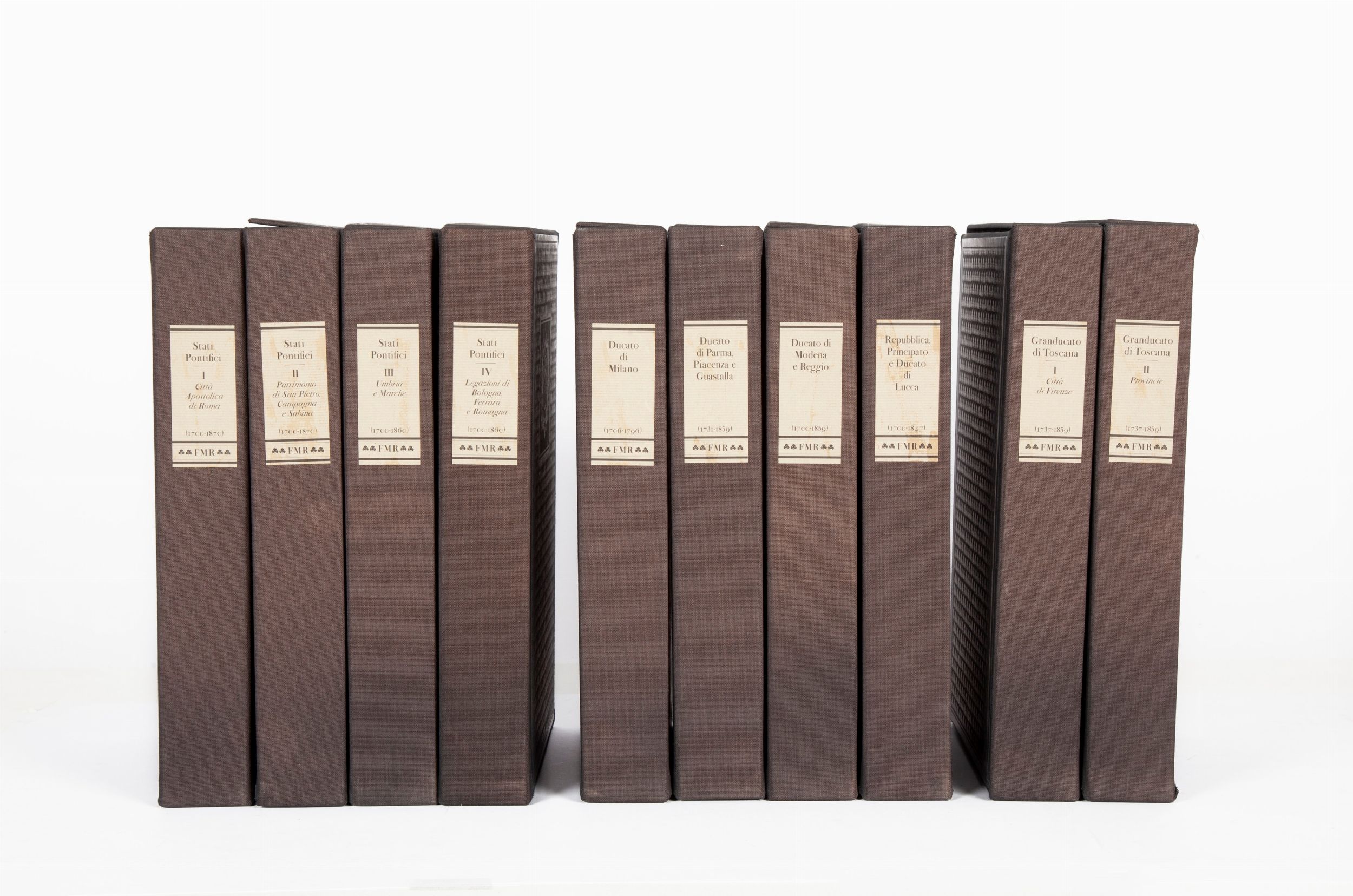 Entro cofanetti originali. Guide impossibili: Masovia, Huasteca, Tùpia, Circassia, Fuegia, Anahuac, Argovia et Brisgovia, Wingandacoa, Vulcania, Tsu-Ching-Cheng, Ingermanlandia, Nueva Espana, Crimtaria, Sogno, Quidera, Beciuania, Ling-Nam, Sublime Porta, Babilonia, Etèria, Suriname, Lhasa, Zululand, Lolozia, Pegù . Antichi stati: Stati Pontifici I-II-III-VI, Granducato di Toscana I-II, Ducato di Milano, Ducato di Parma, Piacenza e Guastalla, Ducato di Modena e Reggio, Repubblica, Principato e Ducato di Lucca.
