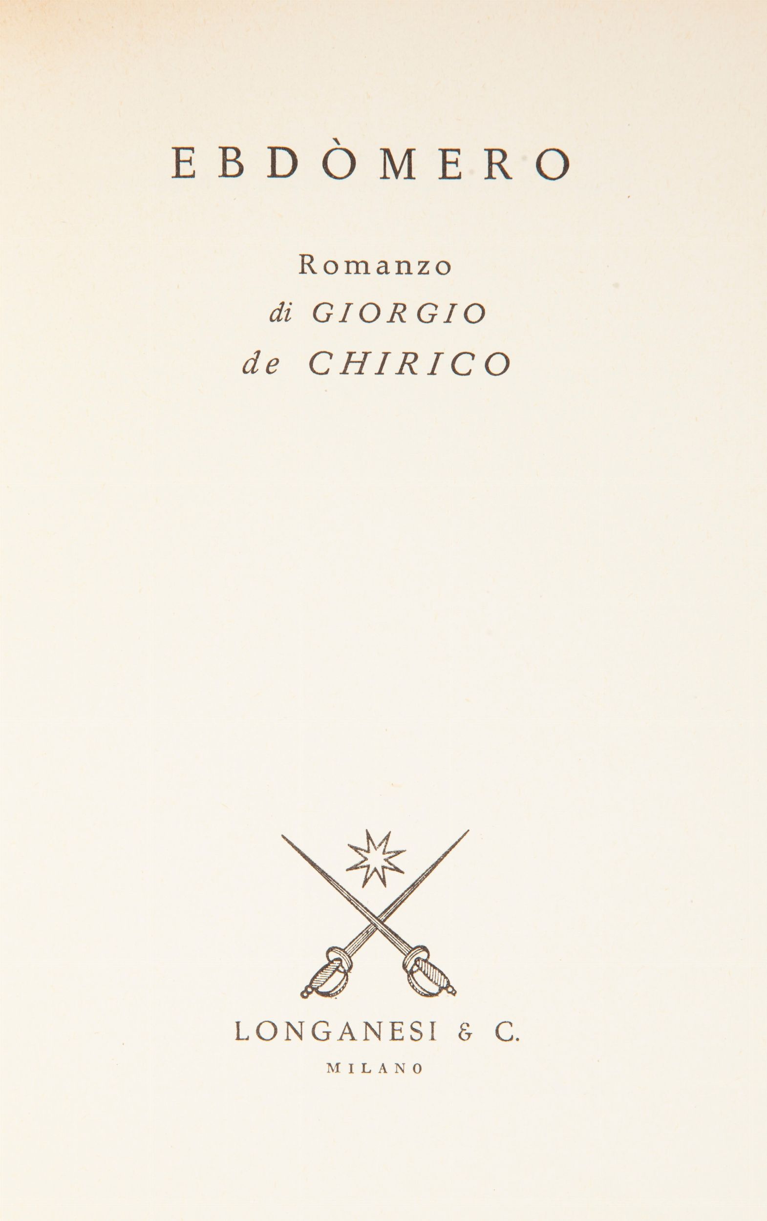 cm 41x32 Bestetti Edizioni, Roma 1976 Edizione in tiratura limitata di 525 esemplari firmati dall'artista, ns n. 221, illustrata con un disegno dell’artista e con 23 tavole litografiche a piena pagina realizzate da De Chirico per quest'edizione, stampata dalle Arti Grafiche Centenari su carta a mano espressamente fabbricata dalle Cartiere Magnani di Pescia. Legatura in piena pelle con cofanetto originale in cartonato. Contiene anche il romanzo di Giorgio De Chirico, Ebdòmero, Longanesi Milano 1971, rilegato in pelle, tutto entro cofanetto originale rivestito in pelle.