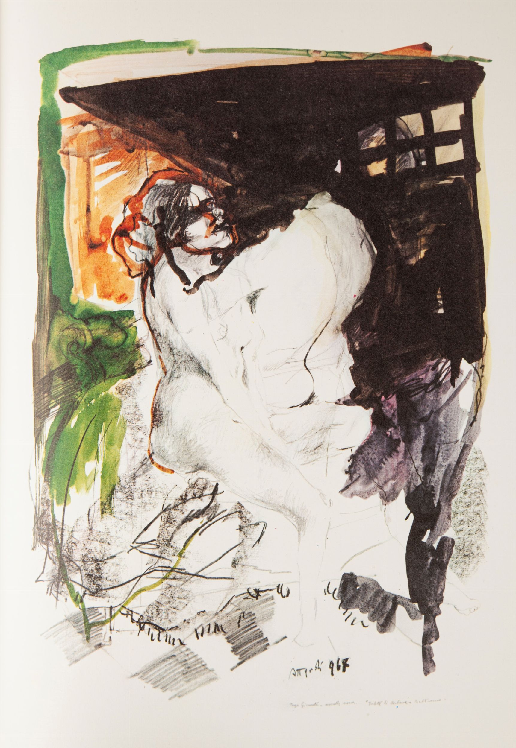 Edizione integrale in tiratura limitata di 500 esemplari in numeri romani ad personam, ns n. CLX, con disegni di Domenico Purificato e due incisioni originali su lastre in argento di Giacomo Manzù ed Emilio Greco incastonate nei piatti anteriori. Legatura in piena pelle di Giulio Scura. Entro cofanetti originali di plexiglass.