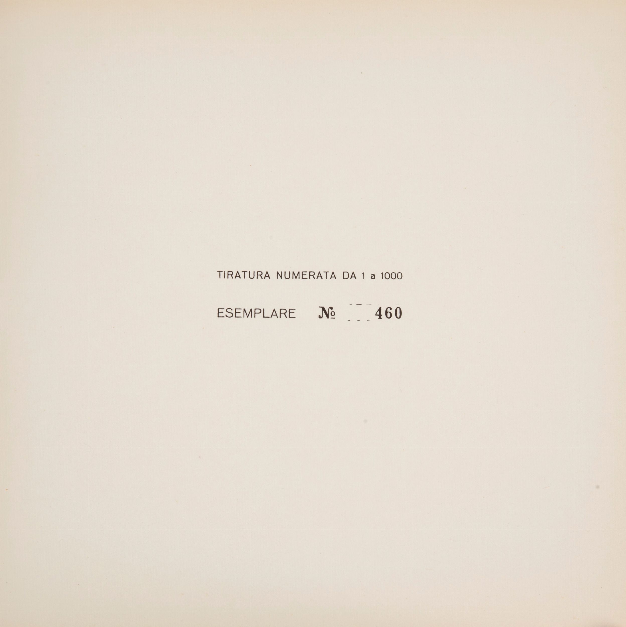 Edizione limitata in 1000 esemplari, ns. n.460. Unito nel lotto l'Abstract e l'invito della Mostra dei disegni dell'artista del periodo 1933-1967, tenuta presso la Galleria I Volsci in Via del Babuino 79 - Roma 1974.