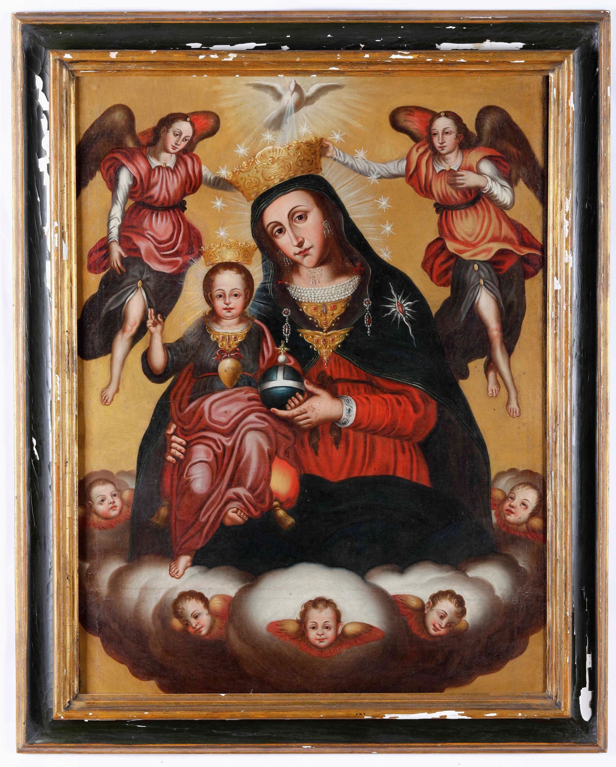 Scuola del Sud America del XIX secolo Madonna con Bambino e angeli