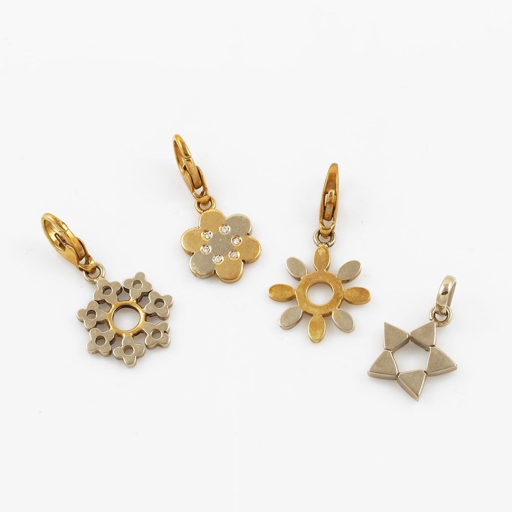 in oro giallo e bianco a differenti fogge di cui uno con piccoli brillanti, gr. complessivi 19,5.