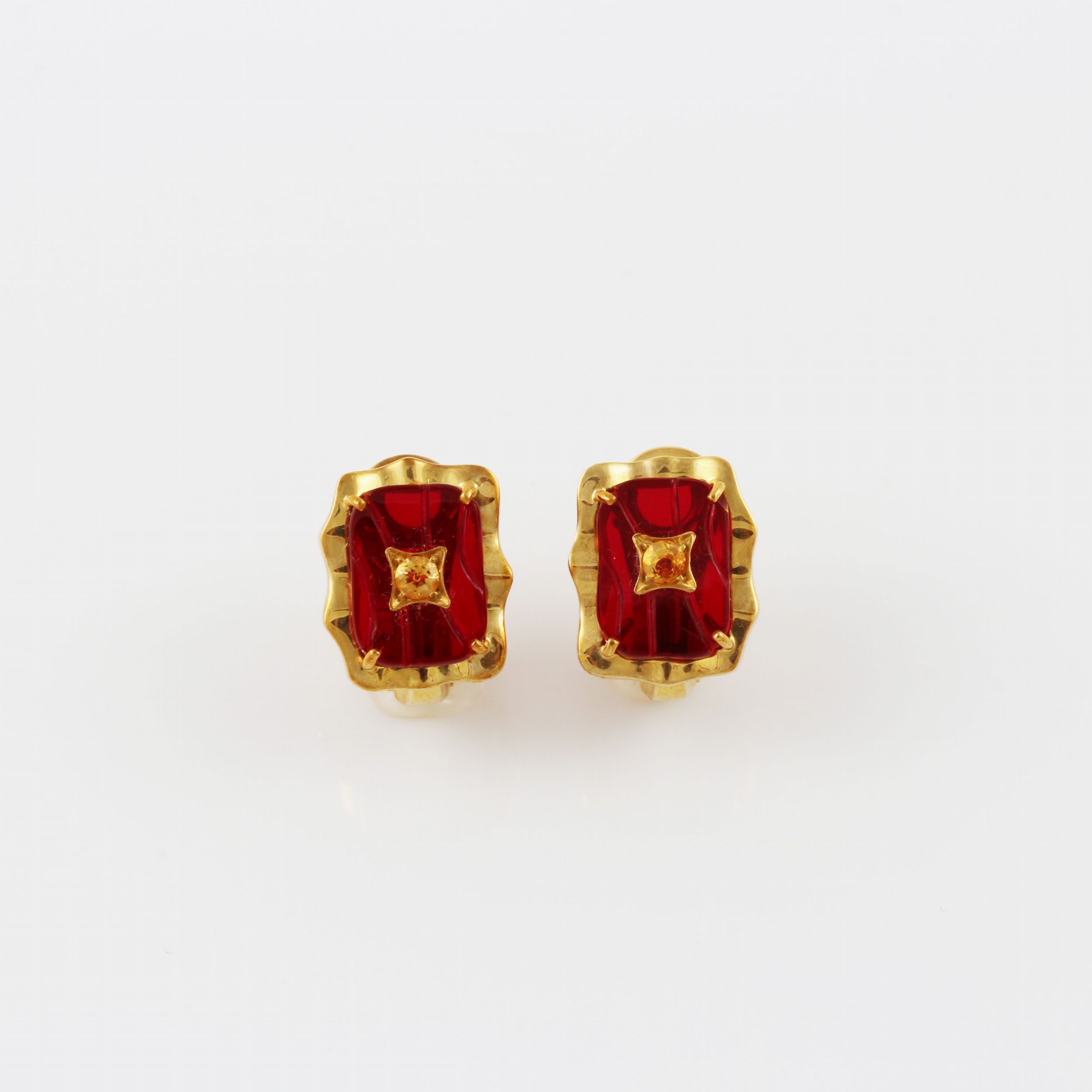 a clip in oro giallo con pietre sintetiche, gr. 13,6.