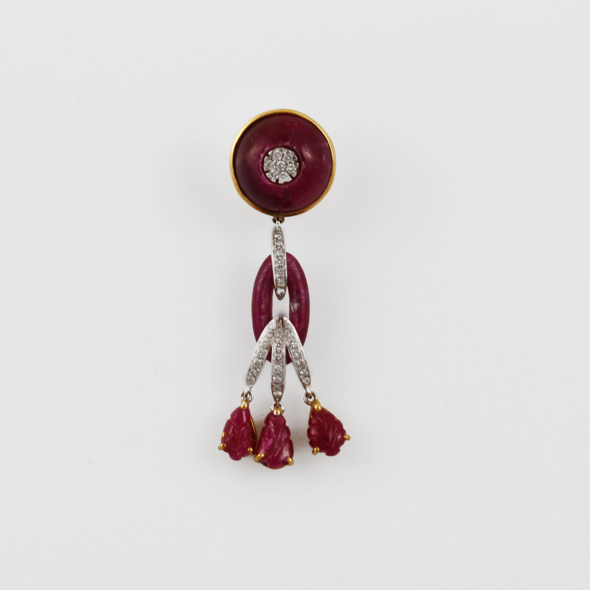 in oro giallo e bianco con rubini e piccoli brillanti, gr. 10,9.