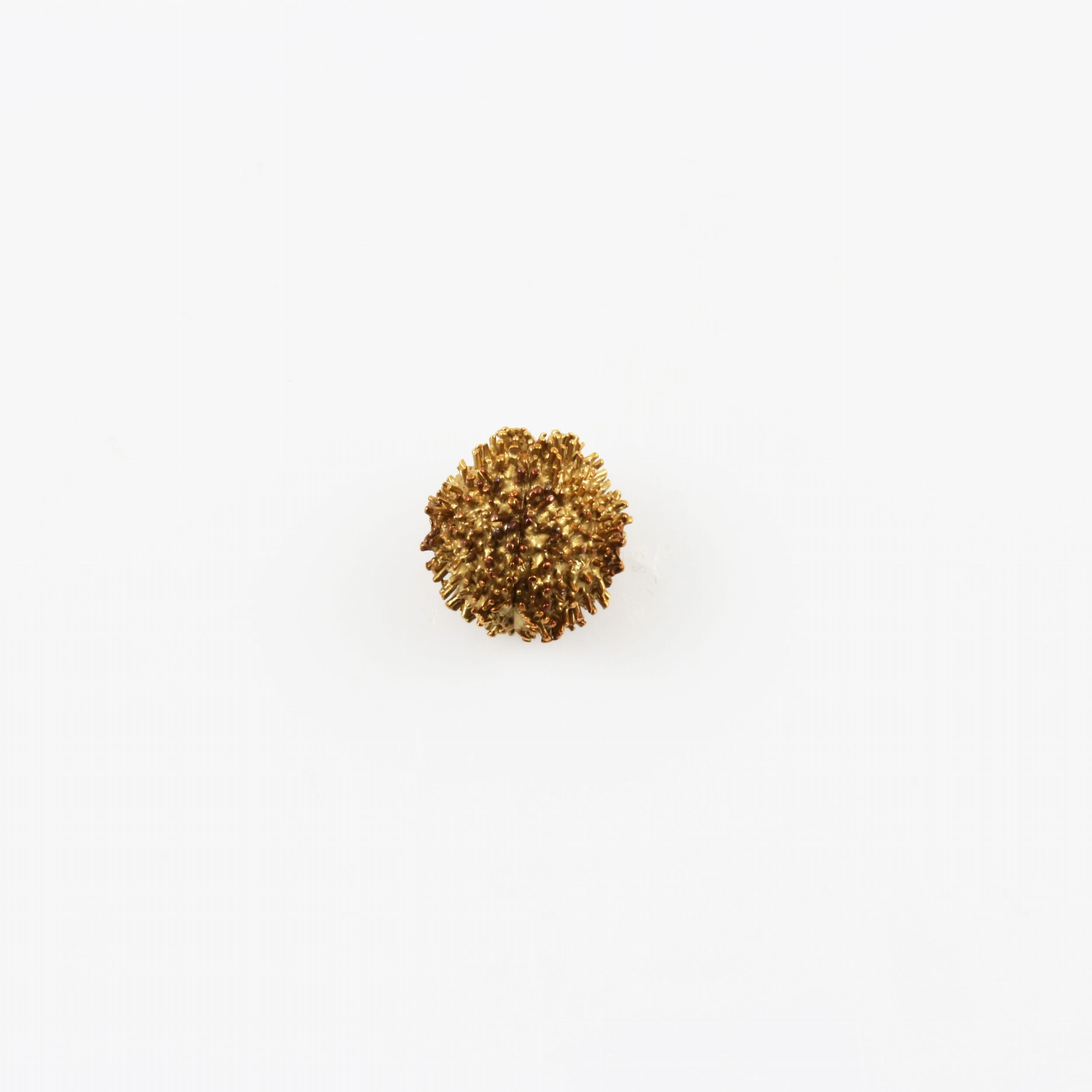 sfera in oro giallo a guisa di riccio con foro passante, gr. 7,6.