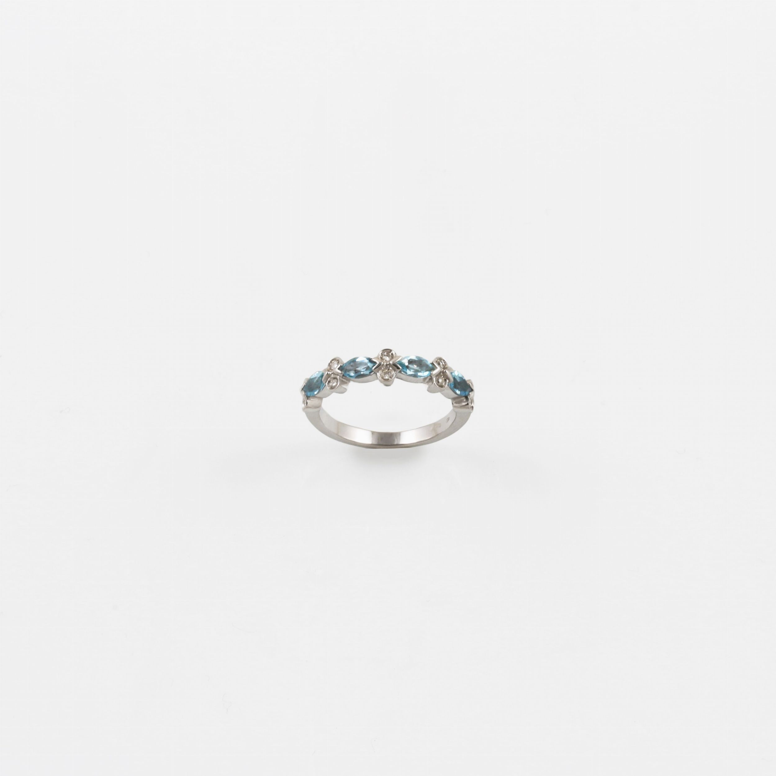 in oro bianco percorso anteriormente da acquemarine taglio navette alternate a piccoli brillanti, gr. 3,7.Misura 15
