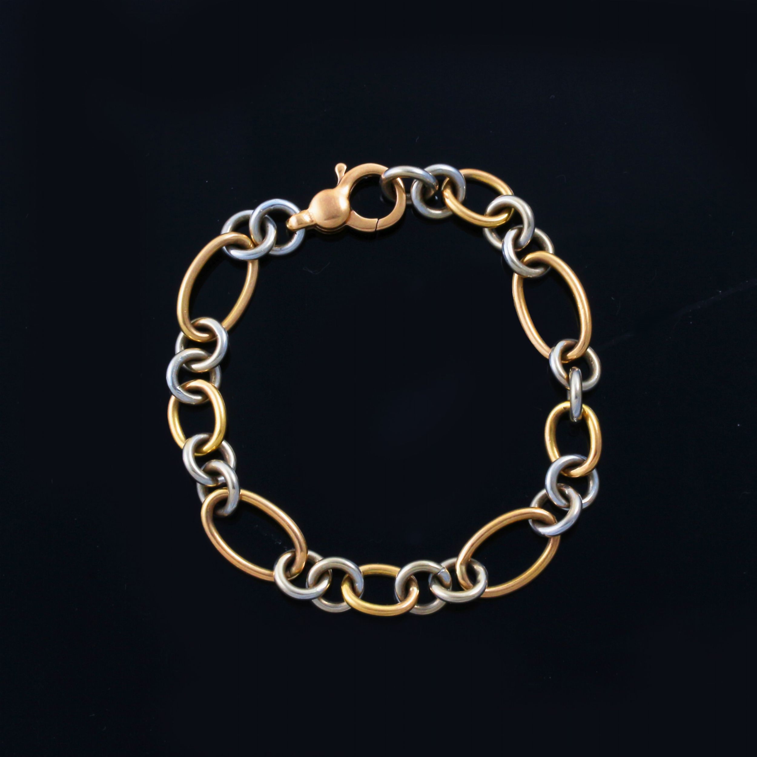 in oro giallo e bianco a maglie tonde e ovali, gr. 22,8.