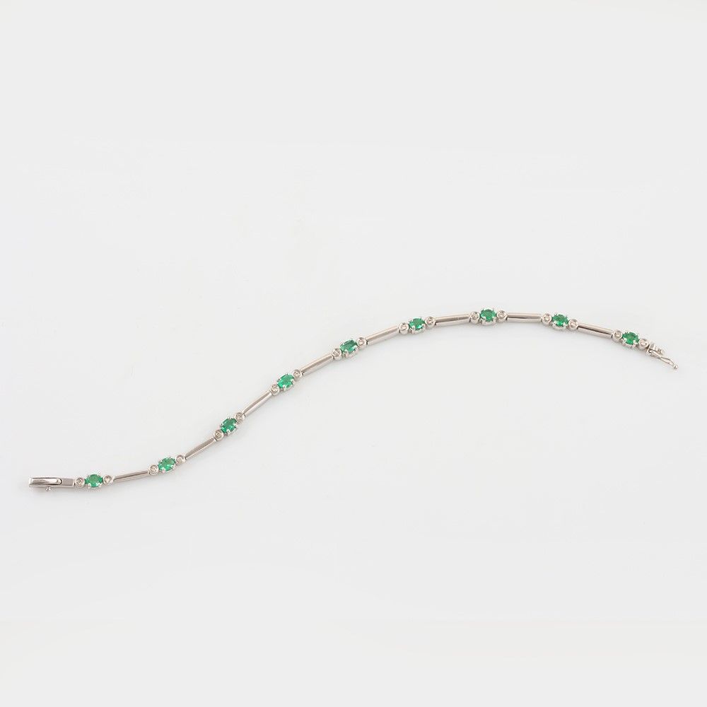 in oro bianco inframezzato da smeraldi e piccoli brillanti, gr. 9,6.