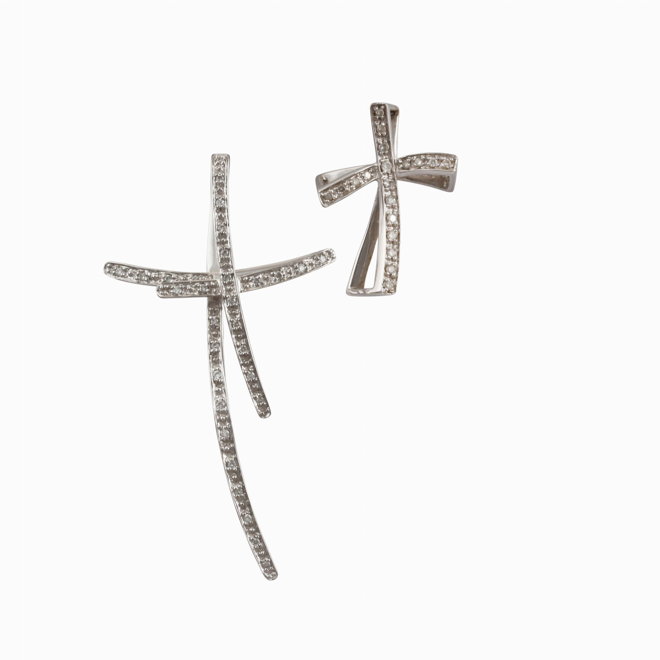 a croce in oro bianco con brillanti, gr complessivi 5,7.