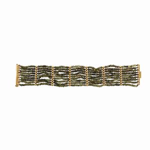 a nove fili di sfere sfaccettate di peridot e tormaline con elementi di separazione in oro giallo a sferette. [..]