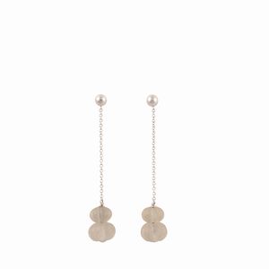 pendenti in oro bianco ciascuno con catenella e sfere di cristallo di rocca inciso sospese, gr. 8,7. Lunghezza [..]