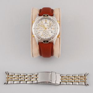 Cassa: in acciaio e oro, fondello a vite Quadrante: bianco, numeri Romani, datario. Sfere a foglia Movimento: [..]