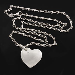 in argento 925 del peso complessivo di gr. 102. Lunghezza catena 91 cm Dimensioni pendente 5,5 x 4,2 cm ca. [..]