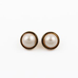 in oro giallo con perla mabé contornata da smalto nero. Diametro 2,2 cm ca.