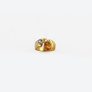 in oro giallo a fascia con quarzo citrino ovale e apatite, gr. 7,8. Misura 16