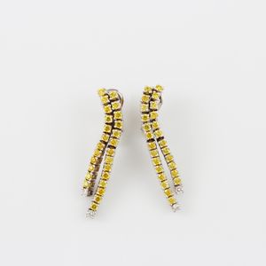 pendenti con clip e perno in oro bianco a doppia rivière con pietre sintetiche gialle e brillanti incolore terminali, [..]