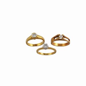 in oro giallo e bianco a differenti fogge di cui uno con piccoli brillanti, gr. complessivi 19,5.