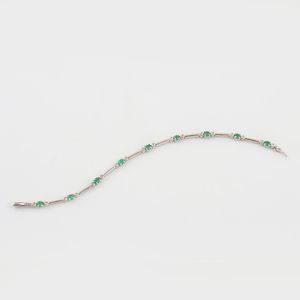 in oro bianco inframezzato da smeraldi e piccoli brillanti, gr. 9,6. Lunghezza 17 cm