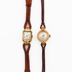 Casse: uno in oro giallo 18K e l'altro in acciaio Movimenti; manuali Anno: 1960 circa DIAM: 20 mm DIM: 18 x 22 [..]