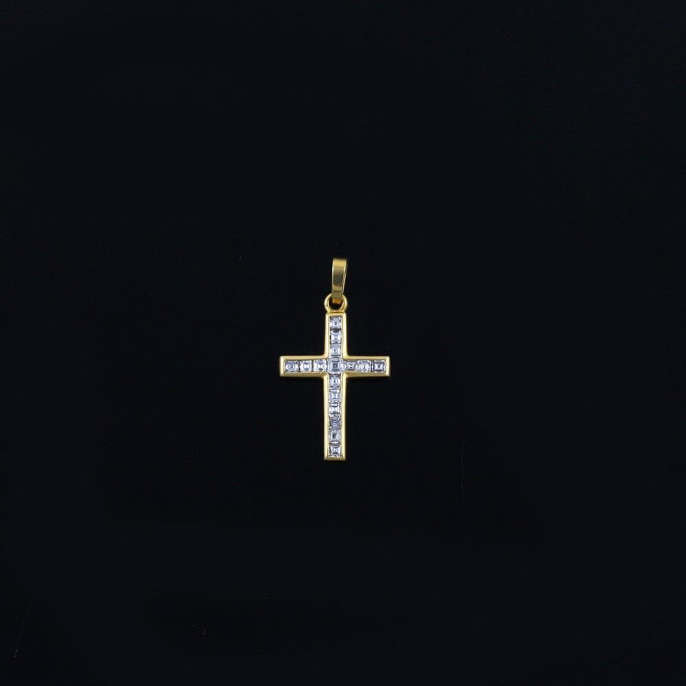 croce in oro giallo con diamanti carré, gr. 2,5.