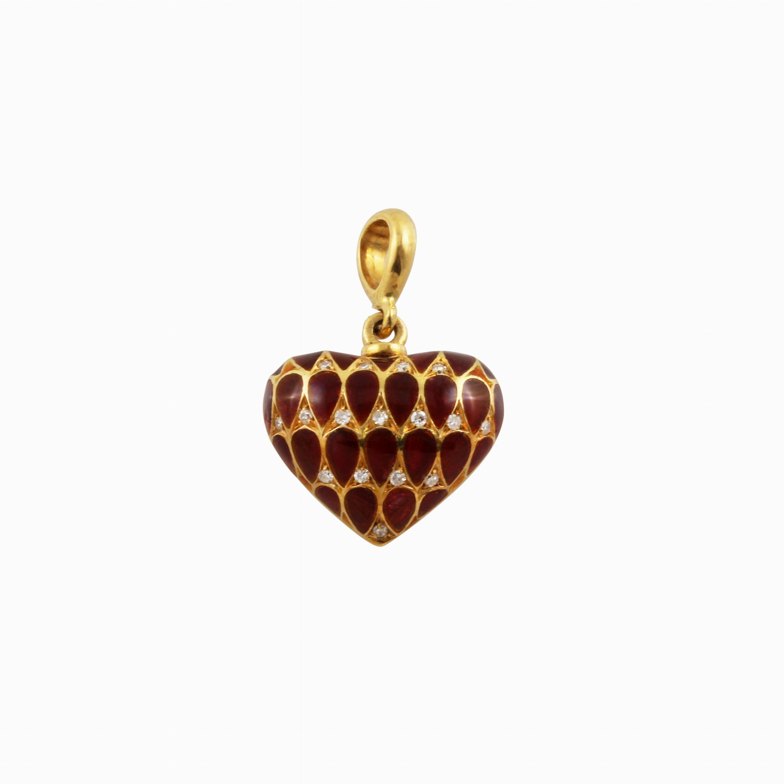 in oro giallo a cuore con smalto (fêlure) e piccoli diamanti, gr. 4,30.