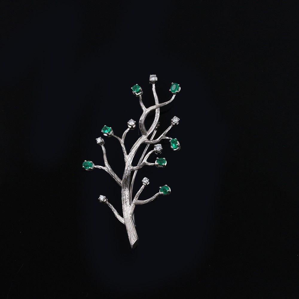 ramage in oro bianco con smeraldi e brillanti, gr. 10,2.