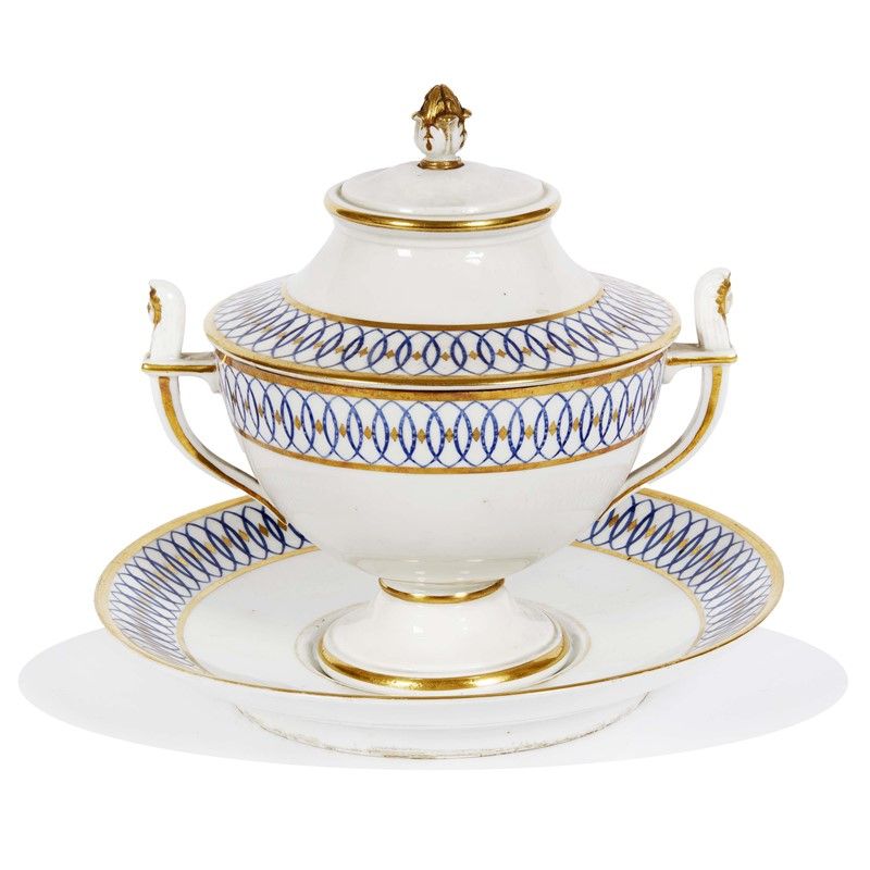 TAZZA DA BRODO CON COPERCHIO E PIATTO, DOCCIA, MANIFATTURA GINORI, FINE SECOLO XVIII