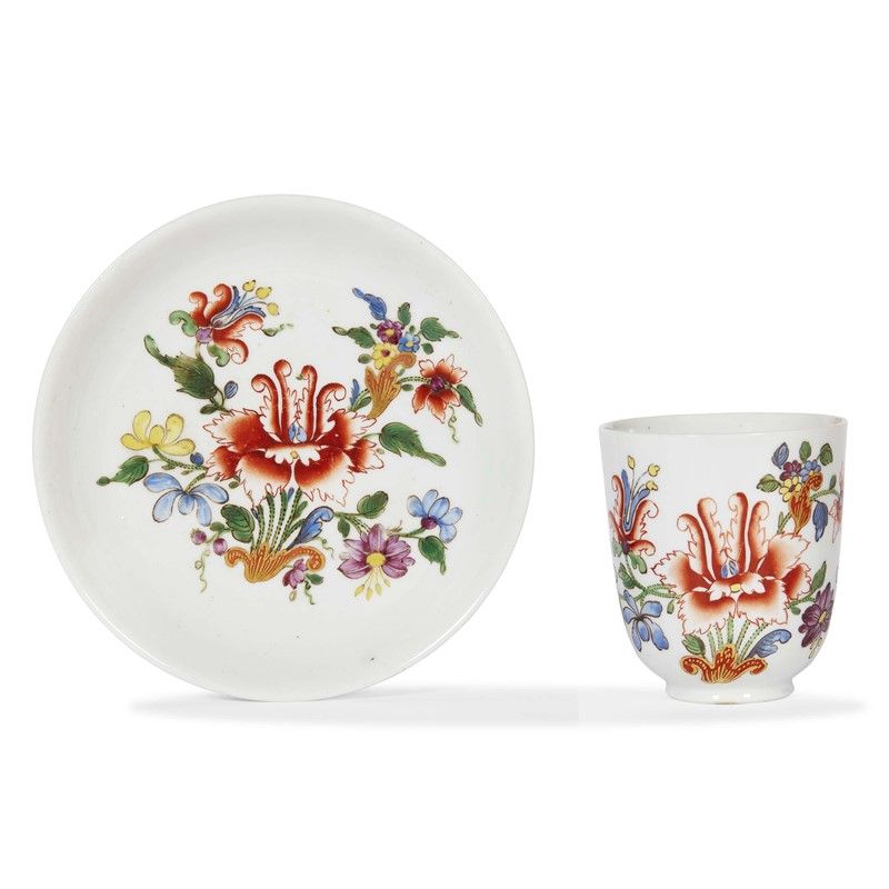 A GINORI CUP WITH SAUCER, DOCCIA, CIRCA 1760