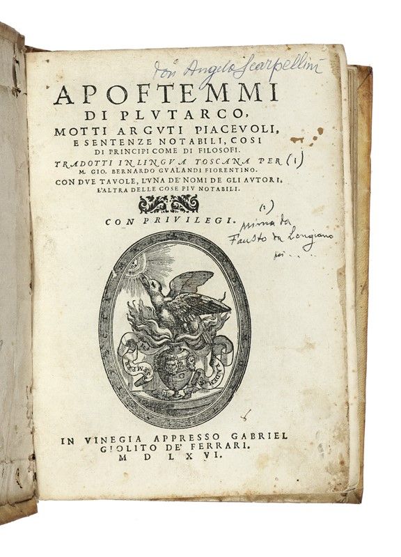 In-4° (mm 210x145). Pagine [28], 632. Marca xilografica al frontespizio, numerosi legni nel testo. Alcuni forellini di tarlo sul frontespizio, senza perdite, un secondo piccolo lavoro di tarlo marginale alle ultime carte, sporadiche e lievi fioriture, nel complesso buona copia. Legatura in piena pergamena floscia con titolo manoscritto al dorso. Legatura parzialmente staccata. Note di possesso sul frontespizio.