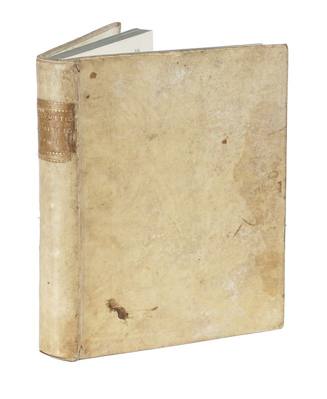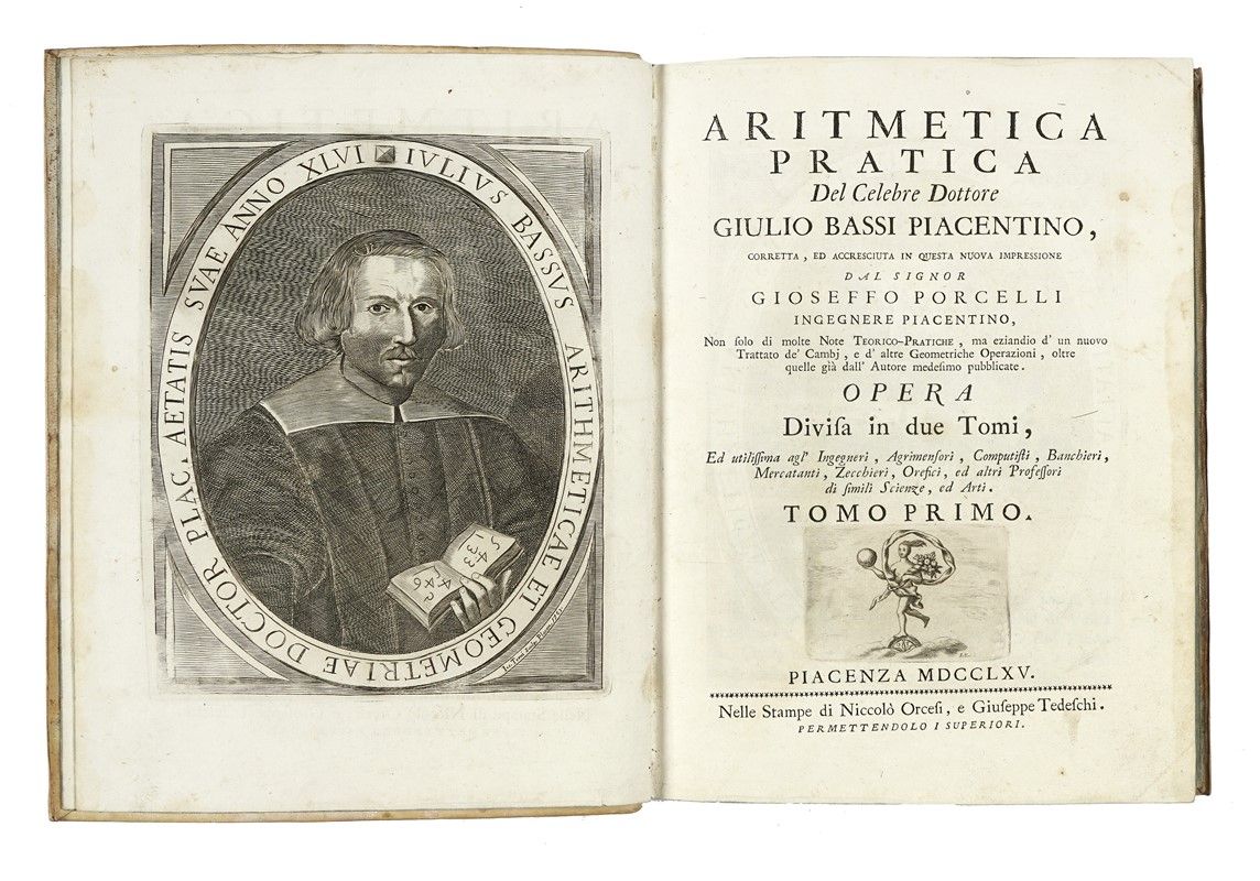 2 parti in 1 volume in-4° (mm 293x215). Pagine [2], VIII, 239, 1 bianca; VIII, 224 con 1 ritratto in antiporta del primo volume e 2 tavole calcografiche ripiegate fuori testo in fine del secondo. Lievissime e marginali bruniture, per il resto ottima copia. Legatura coeva in piena pergamena rigida con titolo in oro su tassello al dorso. Tagli blu. Note di possesso manoscritte in principio di volume.