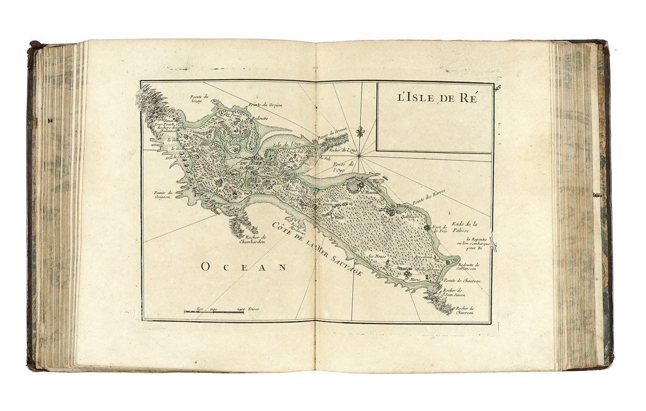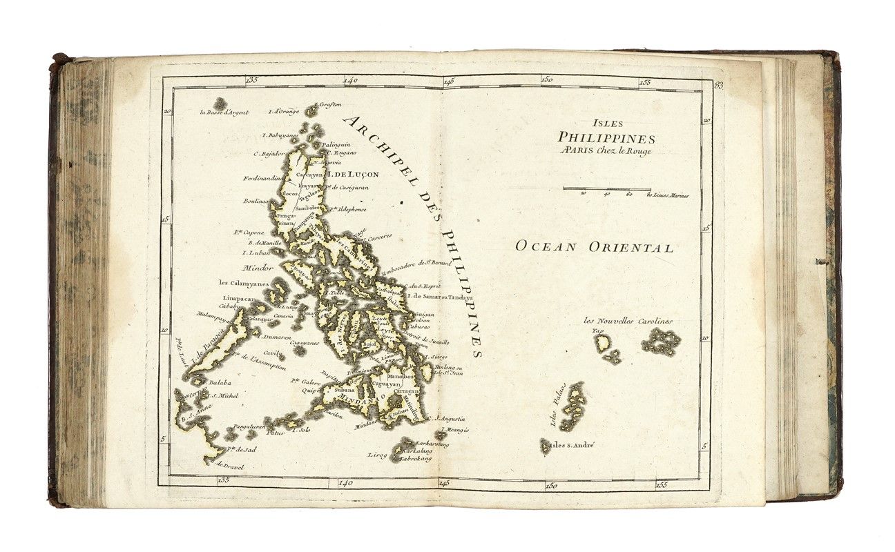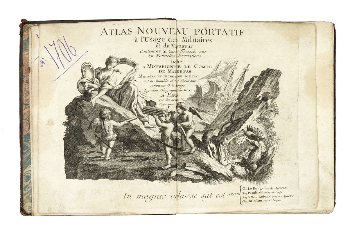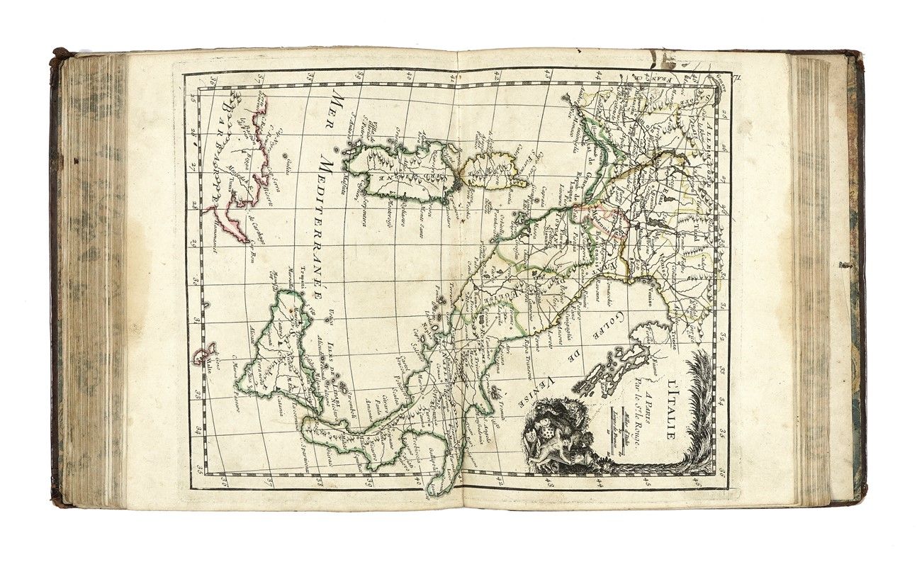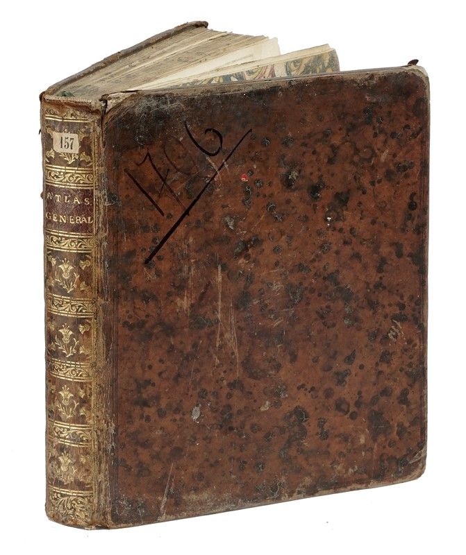In-4° (mm 225x185). Comprende 1 frontespizio impresso a doppia pagina, 91 tavole impresse a doppia pagina con coloritura dei confini e 1 carta di indice delle tavole. Strappo richiuso a carta 49 (Plan de Paris), gora marginale in fine volume ma opera completa e in buono stato conservativo. Legatura coeva in piena pelle con titolo e decorazioni impresse in oro al dorso, dentelles alle unghiature, sguardie in carta marmorizzata. Numero iscritto a inchiostro blu sulla carta di frontespizio.