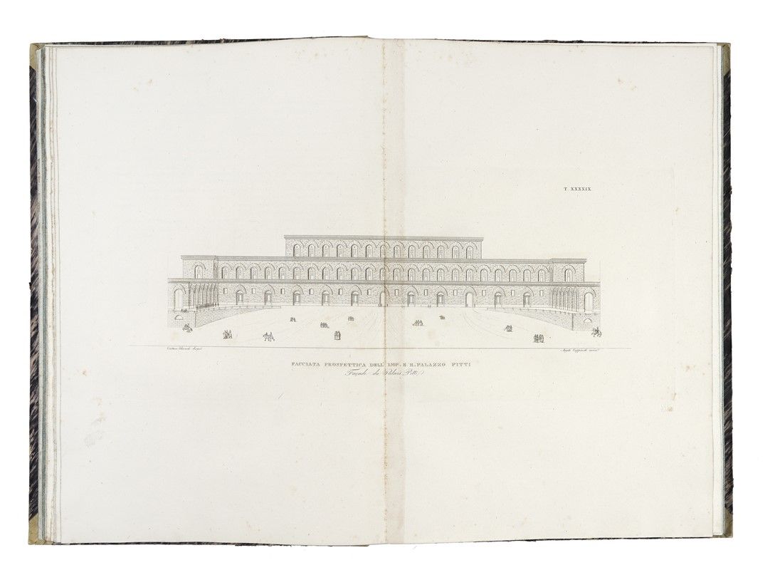 In folio (mm 465x320). Pagine [6], 7, [1] con 19 tavole a piena o doppia pagina; 14 con 49 [di 50] tavole a piena o doppia pagina. Ottimo stato conservativo, solo sporadiche e lievi fioriture. Legatura coeva in mezza pergamena con piatti in carta decorata e titoli in oro su tassello al dorso. Tagli spruzzati. Ex-libris di precedente proprietario al contropiatto anteriore.