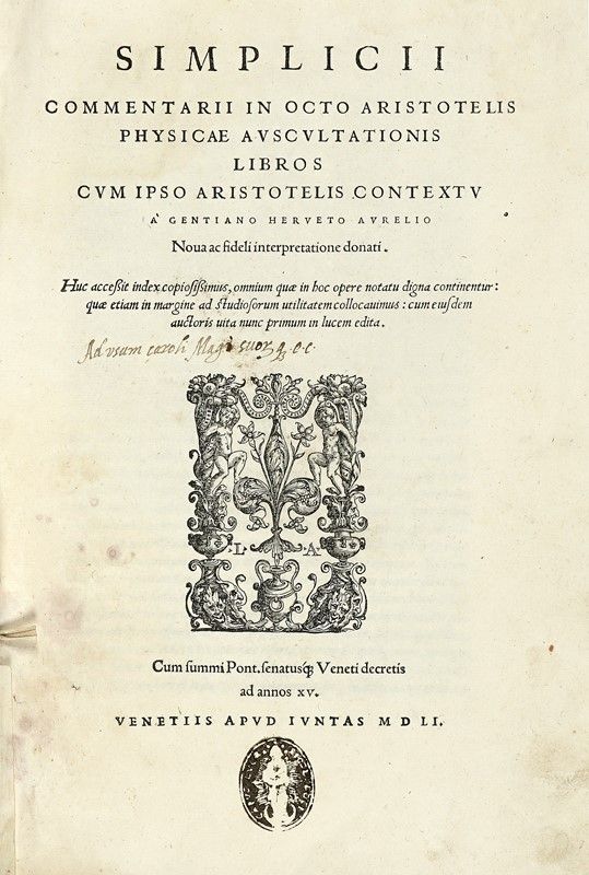 In folio (mm 320x225). Carte [4], 242, [16]. Lievi gore in principio e fine di volume, più visibili nel margine interno del frontespizio, per il resto buono stato conservativo. Legatura coeva in piena pergamena floscia con titolo manoscritto al dorso. Tagli blu. Piatti macchiati, legatura parzialmente allentata (con alcuni strappi in corrispondenza della sguardia anteriore). Nota di possesso manoscritta sul frontespizio e timbro di precedente proprietario.