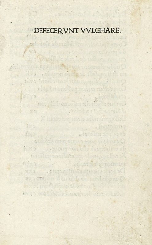 In-4° (mm 198x135). Carte [174]. Segnatura: [*]4, a–u8, x6, χ? (χ4 bianca). Testo in caratteri romani su 25 righe; spazi per capilettera con letterine-guida. Lievi fioriture sparse e alcune mancanze reintegrate che non coinvolgono l'inciso. Legatura successiva in mezza pelle con punte, piatti marmorizzati e titoli in oro al dorso a 5 nervi; tagli verdi e contropiatto anteriore in carta marmorizzata. Lievi abrasioni ai piatti, altrimenti buona conservazione. Ex-libris cartacei applicati al contropiatto e timbro Gustavo Camillo Galletti alla seconda carta.