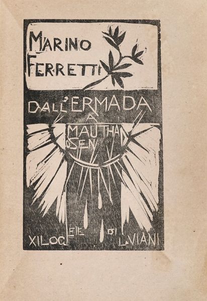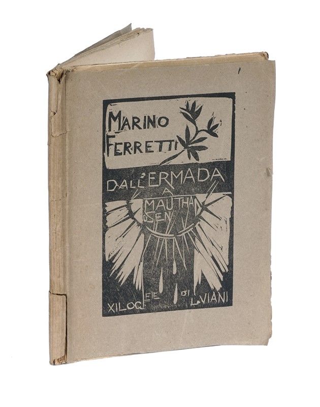 In-8° grande (mm 258x180). Pagine XII, [2], 111, [1]. Con 11 xilografie originali di Lorenzo Viani a piena pagina, di cui 1 fuori testo e 10 nel testo. Frontespizio xilografico. Esemplare in barbe, con lievi ed uniformi bruniture, qualche macchiolina sparsa e minimi strappetti marginali senza perdite. Brossura editoriale con xilografia al piatto superiore, strappi e difetti al dorso, altrimenti buona copia. Dedica manoscritta alla prima carta bianca, datata Agosto 1925.