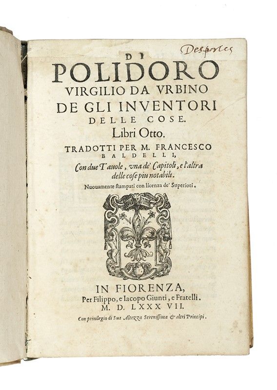 In-4° (mm 216x150). Pagine [24], 426, [48]. Marca tipografica incisa in legno al frontespizio e alle pagine di registro; capilettera xilografici istoriati. Mancanza reintegrata nel margine superiore del frontespizio e della seconda carta, copia marginalmente gorata. Legatura in piena pergamena con titolo manoscritto al dorso. Nota manoscritta sul frontespizio.